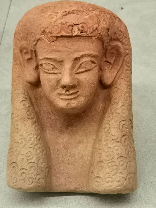 Cabeza femenina de estilo egiptizante (525 – 500 a.C.) procedente del pozo 7 de la calle León. |